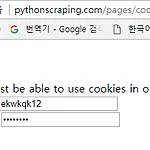 세션 아래 코드는 세션을 사용하여 페이지를 요청할 때 쿠키를 따로 전송하지 않고 세션에 저장된 쿠키를 사용하여 페이지를 요청하는 코드이다. import requests # 세션 생성 session = requests.Session() # 폼에 데이터 입력 + 세션 사용하여 요청하기 params = {"username":"ekwkqk12", "password":"password"} req_s = session.post("http://pythonscraping.com/pages/cookies/welcome.php", data=params) # 세션에 저장된 쿠키 데이터 확인 print("[+] 쿠키에 저장된 데이터 ") print(req_s.cookies.get_dict()) # 쿠키 값이 포함된 세션을 사..